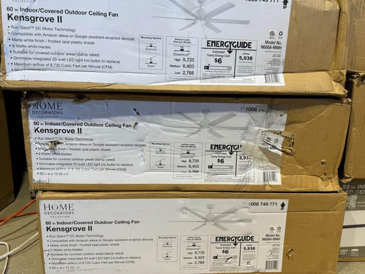 Home Decorators Kensgrove II 60 in. Smart Indoor/Outdoor Matte White Ceiling Fan with Remote Included Powered by Hubspace