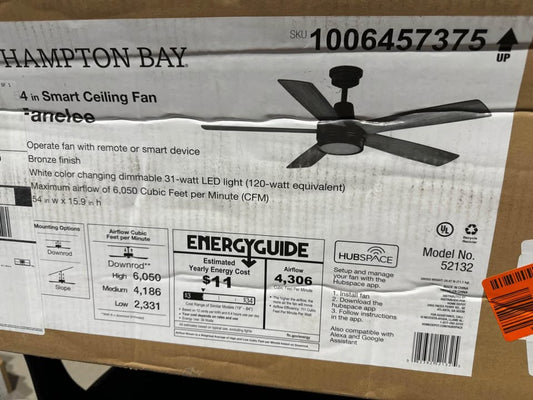 Hampton Bay Fanelee 54 in. Bronze Color Changing LED Smart Ceiling Fan with Light Kit and Remote Powered by Hubspace