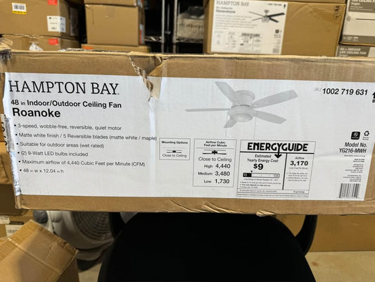 Hampton Bay Roanoke 48 in. Indoor/Outdoor Wet Rated White Ceiling Fan with LED Bulbs Included