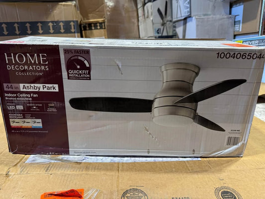 Home decorators Ashby Park 44 in. White Color Changing Integrated LED Brushed Nickel Ceiling Fan with Light Kit and 3 Reversible Blades