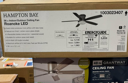 Hampton Bay Roanoke 56 in. Indoor/Outdoor Wet Rated Natural Iron Ceiling Fan with LED bulbs Included