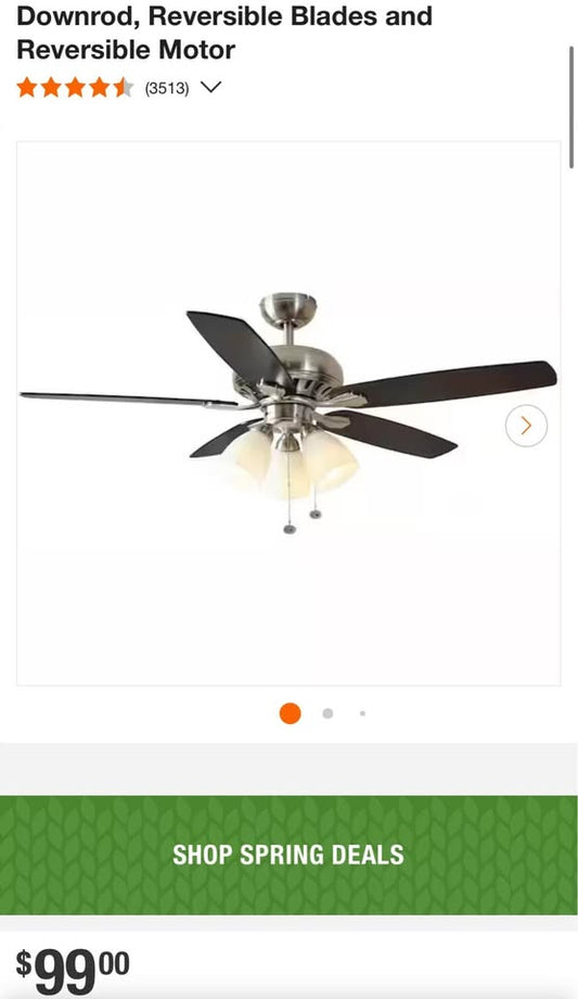 Hampton Bay Rockport 52 in. Indoor LED Brushed Nickel Ceiling Fan with Light Kit, Downrod, Reversible Blades and Reversible Motor