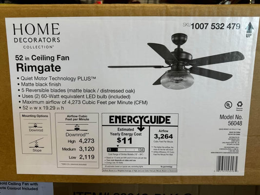 Home Decorators Collection 52 in. Rimgate Indoor Matte Black LED Ceiling Fan with Remote Control