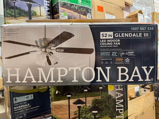 Hampton Bay Glendale III 52 in. LED Indoor Brushed Nickel Ceiling Fan with Light and Pull Chains
