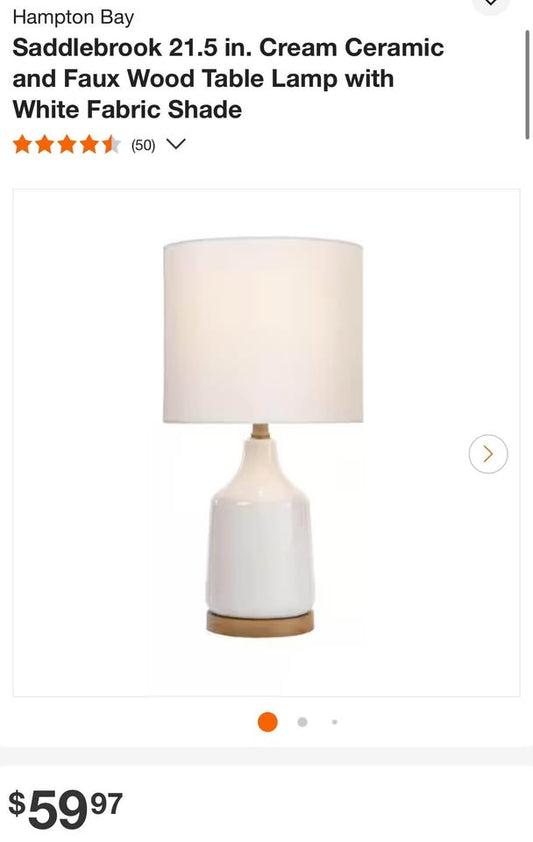 Hampton Bay Saddlebrook 21.5 in. Cream Ceramic and Faux Wood Table Lamp with White Fabric Shade