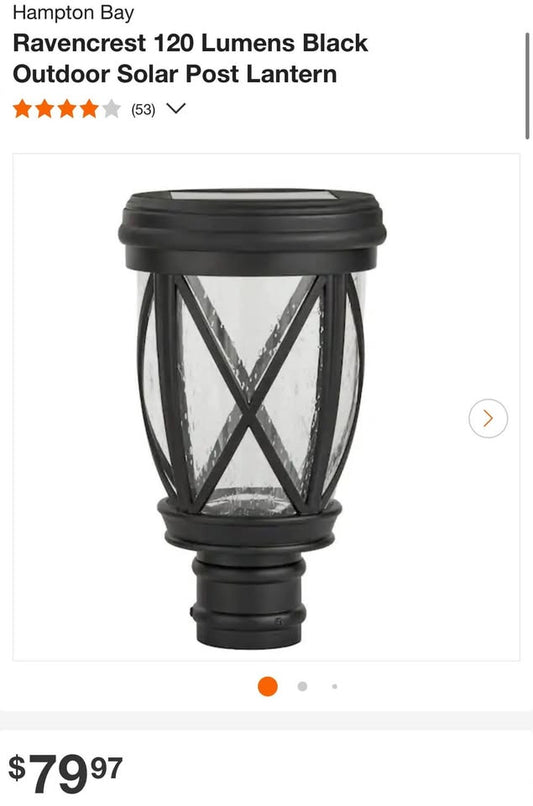 Hampton Bay Ravencrest 120 Lumens Black Outdoor Solar Post Lantern