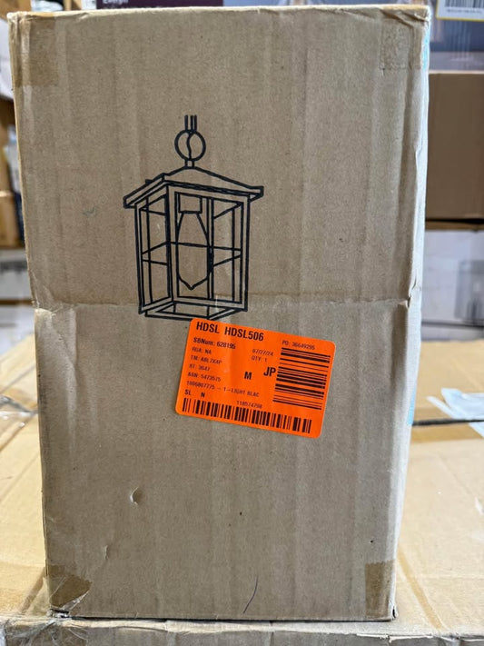 LNC Modern Farmhouse Black Outdoor Hanging Lantern 1-Light Coastal Pendant with Seeded Glass Shade for Covered Patio Porch