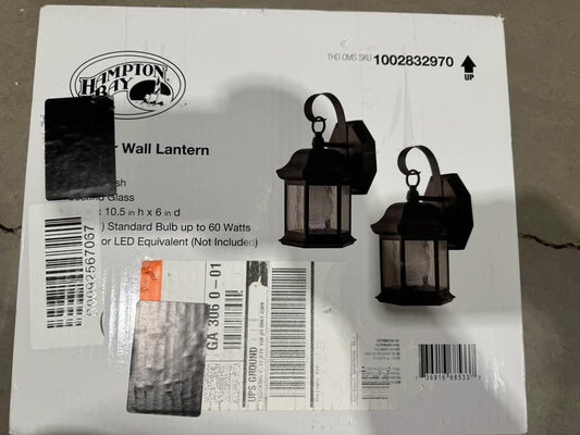 Hampton Bay 10.5 in. 1-Light Black Outdoor Wall Light Fixture with Seeded Glass (2-Pack)