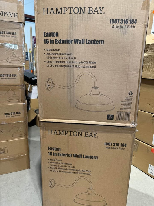 Hampton Bay Easton 16 in. 1-Light Matte Black Barn Outdoor Wall Light Lantern Sconce with Steel Shade