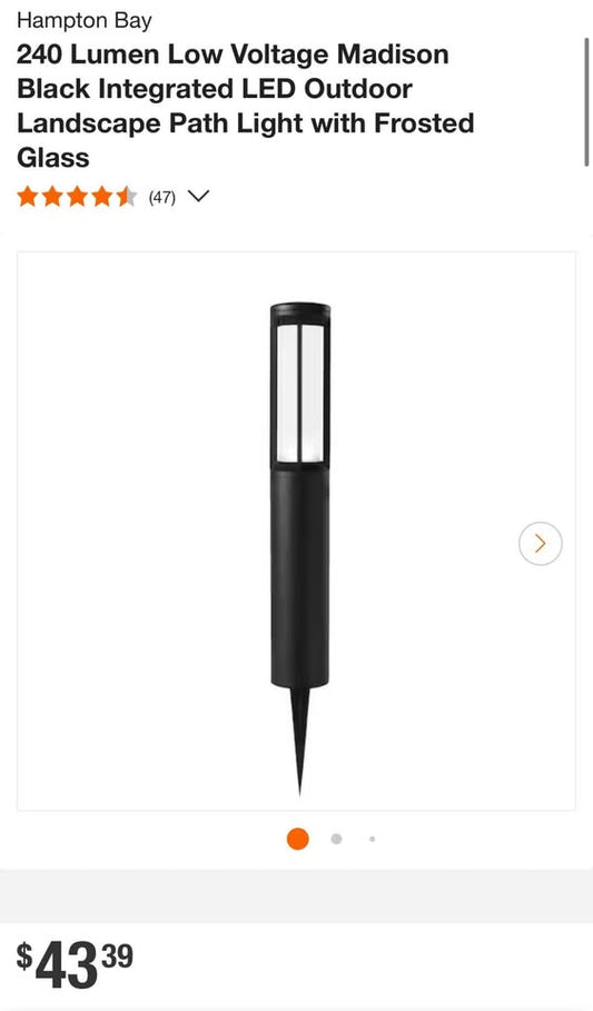 Hampton Bay 240 Lumen Low Voltage Madison Black Integrated LED Outdoor Landscape Path Light with Frosted Glass