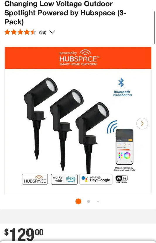Hampton Bay Smart 450 Lumens Black LED Color Changing Low Voltage Outdoor Spotlight Powered by Hubspace (3-Pack)