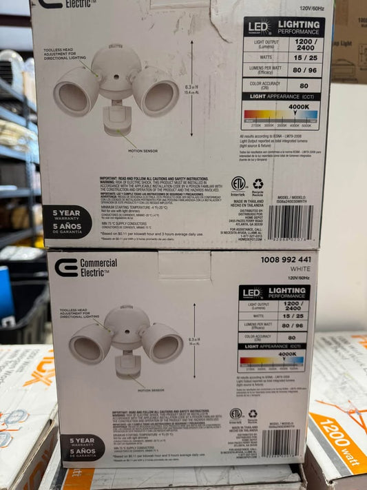 Commercial Electric 240-Degree White Motion Activated Integrated LED Outdoor Twin Head Security Flood Light, 4000K