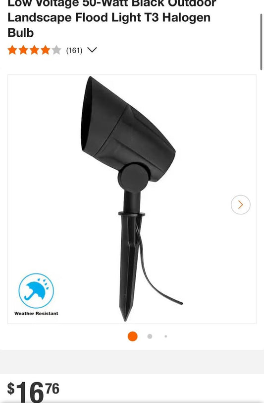 Hampton Bay Low Voltage 50-Watt Black Outdoor Landscape Flood Light T3 Halogen Bulb