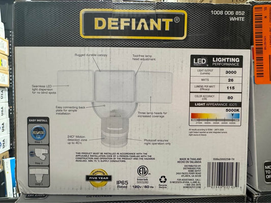 Defiant 240-Degree White Motion Activated Integrated LED Outdoor Triple Head Flood Light