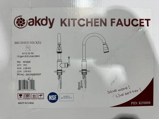 AKDY Easy-Install Single-Handle Pull-Down Sprayer Kitchen Faucet with Flexible Hose in Brushed Nickel