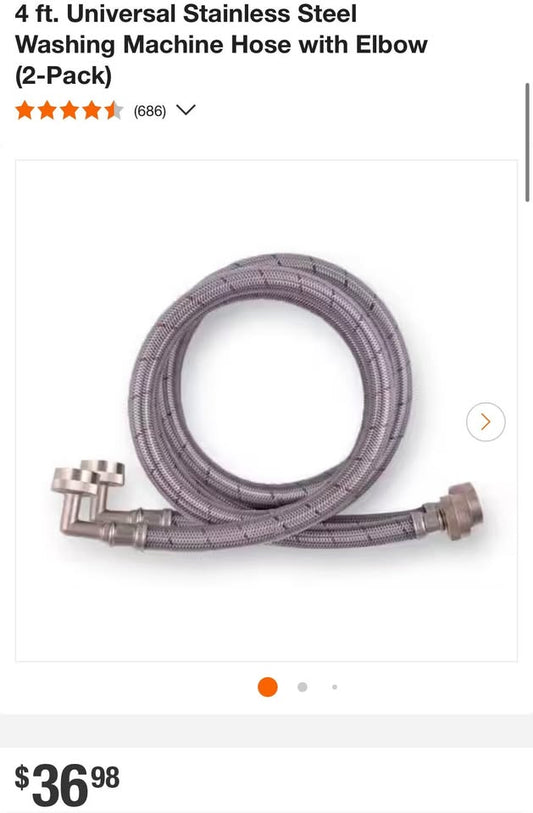 Everbilt 4 ft. Universal Stainless Steel Washing Machine Hose with Elbow (2-Pack)
