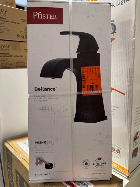 Pfister Bellance Single Handle Single Hole Bathroom Faucet with Drain Kit and Deckplate included in Matte Black