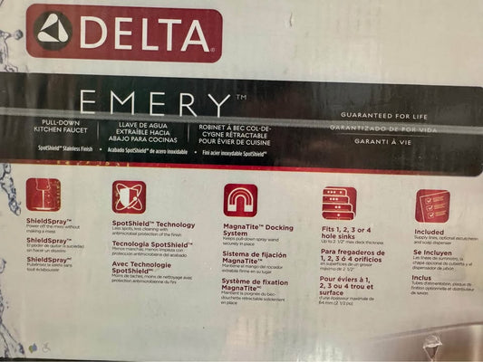 Delta Emery Single-Handle Pull-Down Sprayer Kitchen Faucet with ShieldSpray and Soap Dispenser in SpotShield Stainless Steel