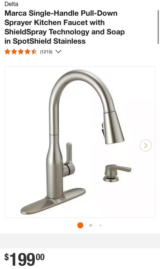 Delta Marca Single-Handle Pull-Down Sprayer Kitchen Faucet with ShieldSpray Technology and Soap in SpotShield Stainless