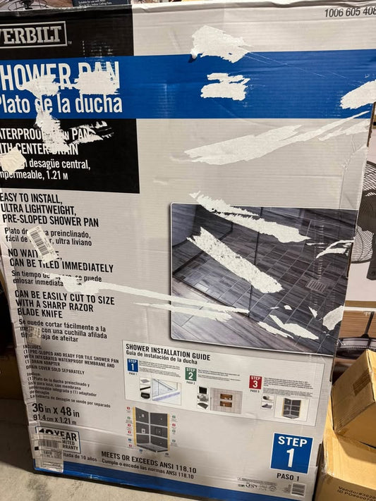 Everbilt Watershield Shower System 36 in. x 48 in. Waterproof Center Drain Shower Tray With Drain Assembly