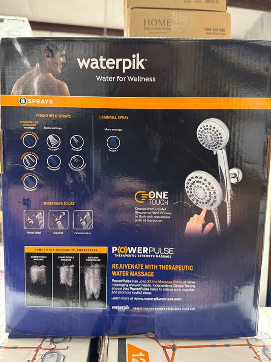 Waterpik 8-Spray Patterns with 1.8 GPM 6.25 in. Wall Mount Dual Shower Head and Handheld Shower Head in Chrome