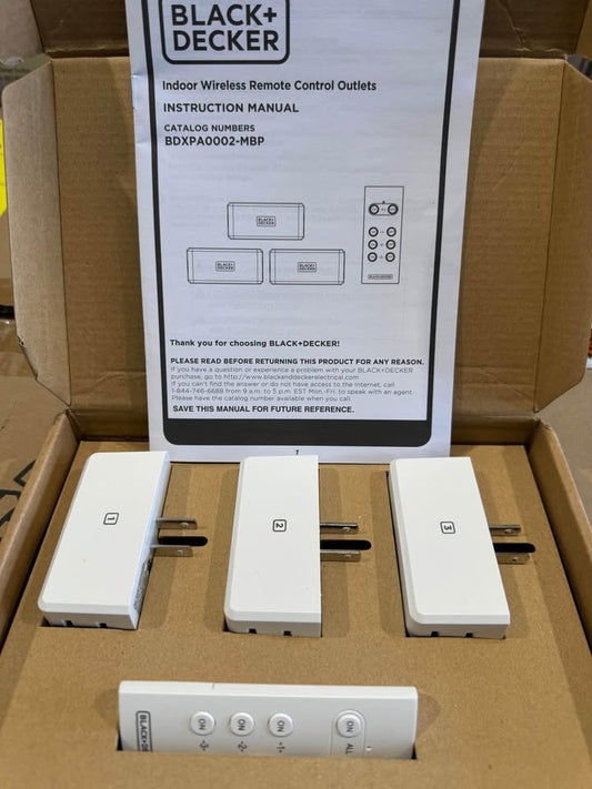 BLACK+DECKER 1 Amp to 15 Amp Plug-In Indoor Wireless Remote Control System with 3 Smart Adapters Grounded and 1 Remote, White