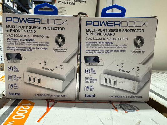 Tzumi Power Dock 2-Outlet Multi-Port Surge Protector and Phone Stand