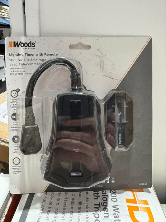 Woods Outdoor Lighting Mechanical Timer with 3-Outlet Remote Control Countdown