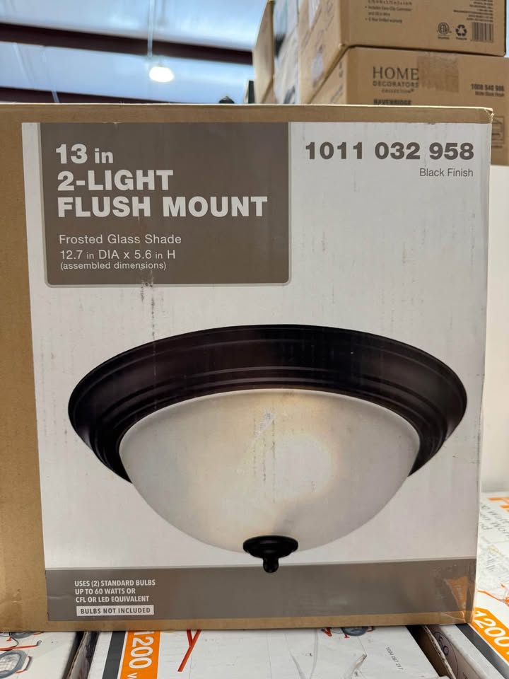 This transitional flush mount light comes in a black finish and features a white, frosted glass shade. The low-profile design makes it easy to fit into compact spaces with low ceiling clearance. Use in hallways, bedrooms, kitchens, offices, and more. This ceiling light provides ample lighting with a 2-bulb capacity of up to 60-Watt each. Available in multiple finishes to match all decor color schemes, shop the collection for black, bronze, and brushed nickel finishes.