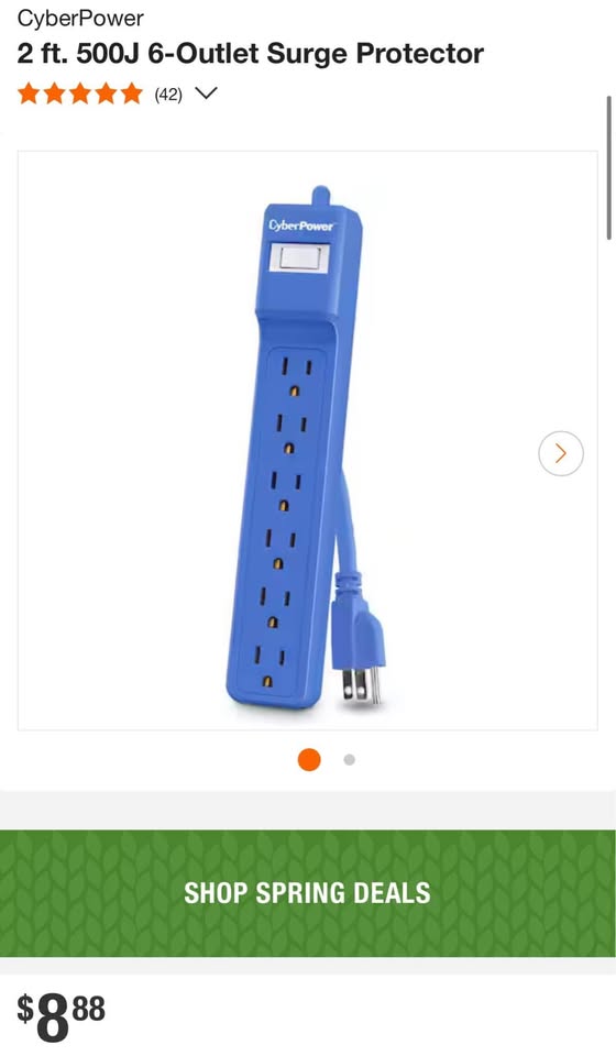 6 surge protected AC outlets power computers, monitors, printers and other devices 500J surge protection 2 ft. power cord with straight, grounded plug