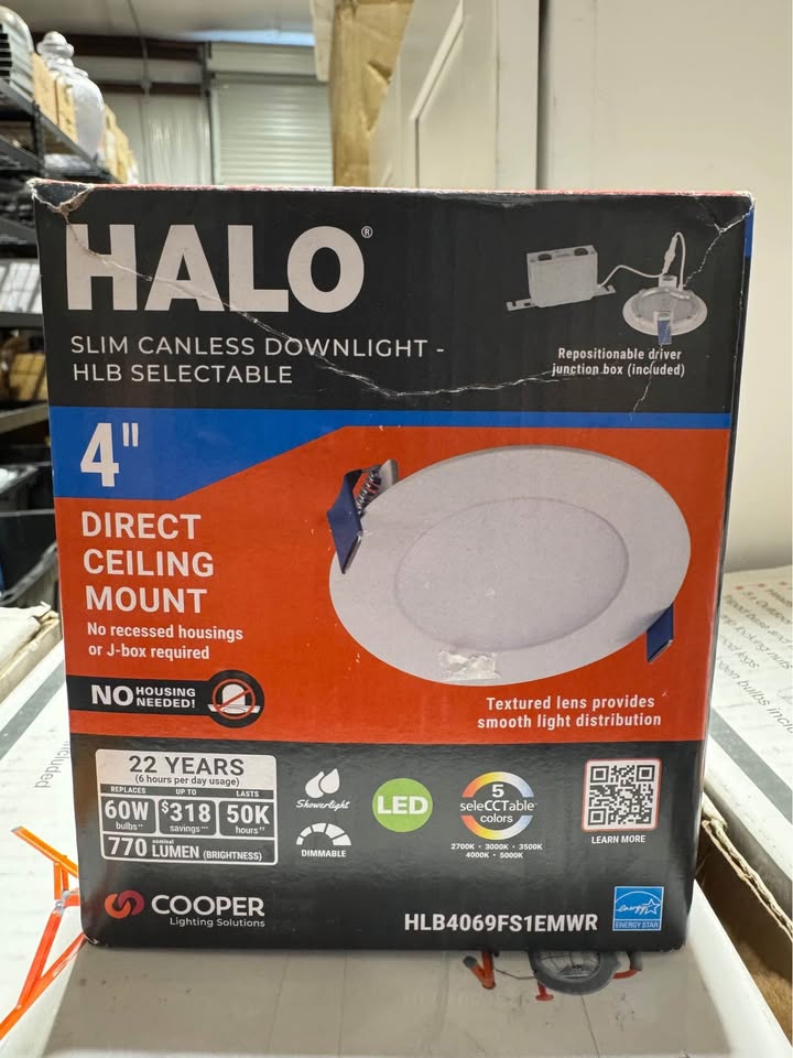Enhance your home's curb appeal or transform any space with HALO's HLB recessed direct mount downlights! You can install these lights virtually anywhere, thanks to their canless design and ultra-slim, ½" profile that avoids obstacles like joists and ducting; the HLB series can also safely come into contact with insulation. Customize your look with a 5-position switch that lets you control the color temperature - from warm white (2700K) to daylight (5000K).Additional features ensure an air-tight installation that prevents light and air from escaping, saving energy. HLB is Wet Location-listed and perfect for both indoor and outdoor use-from soffit lighting that improves your home's exterior appearance and security to walkways, showers, and more. These versatile lights are conveniently available in 4"" and 6"" sizes and individual and multi-packs. Engineered and tested in the U.S.A., HALO has been a contractor-preferred brand for over 65 years and is the gold standard in LED recessed lighting.