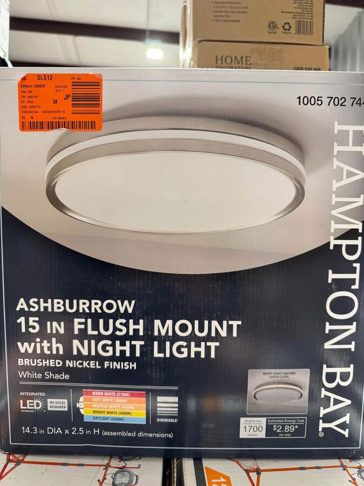 This Hampton Bay ASHBURROW 15 in. LED Flush mount with a brushed nickel finish and night light mode is a great addition to any room. Featuring a selectable color temperature switch, you can adjust the color temperature to best fit your needs between