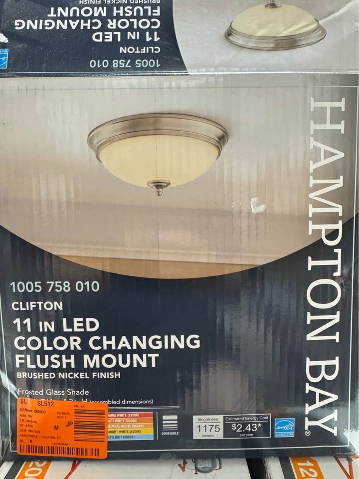The technology of this 11 in. 20-Watt Brushed Nickel Ceiling Flushmount has a 90 CRI high col or rendering that creates a perfect illumination and makes this fixture completely glare free providing more natural light for your home or office. The long-lasting LED technology provides light output equivalent to 120-Watt of traditional incandescent lighting, while using less than 20% of the energy for year round savings. If features a selectable col or temperature feature which allows you to choose your preferred white light color: soft 2700K, warm 3000K, bright 3500K, cool 4000K or daylight 5000K. Enjoy a 5-year warranty and a rated life of 45-years or 50,000-hours of continuous use. The ENERGY STAR certified light source is maintenance free with no bulbs to change.