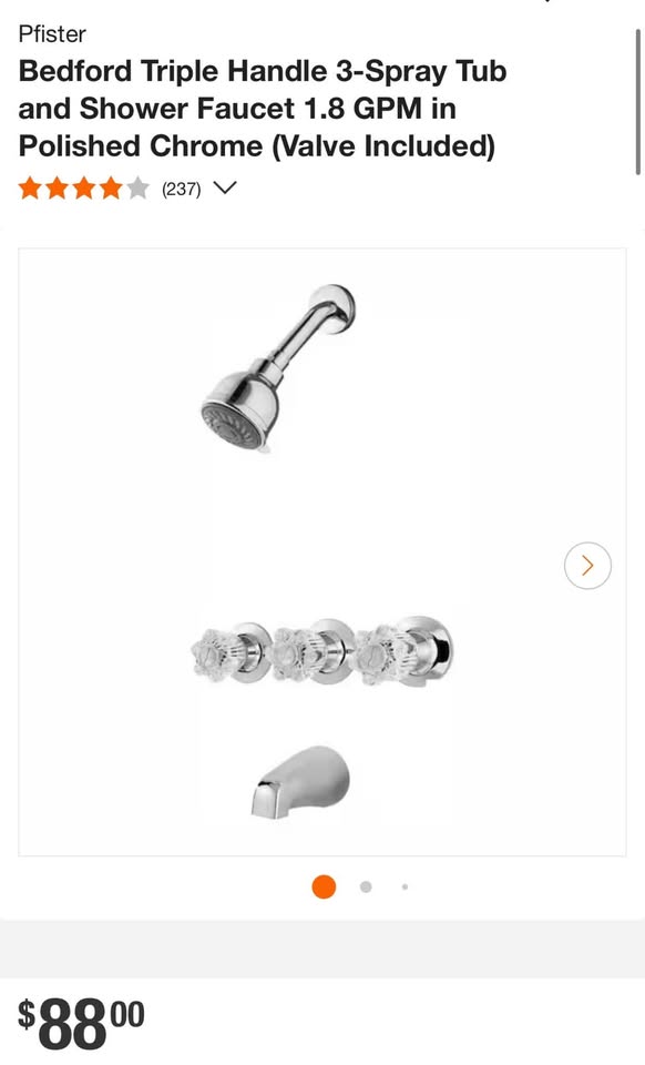 Pfister Bedford Triple Handle 3-Spray Tub and Shower Faucet 1.8 GPM in Polished Chrome (Valve Included)