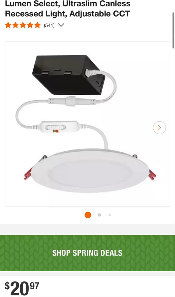 The Commercial Electric Premium Ultra Slim Recessed Lighting Kits are the recessed lights of the future. Not only is each fixture designed specifically for small spaces where height clearance is limited such as beams, pipes, or ductwork, you can select the lumen out put needed for ceiling heights and room types along with change the color temperature with a flick of a button. The integrated color changing switch is located on the cable so you can choose between a 2700, 3000, 3500, 4000 or 5000 Kelvin temperature to best suit your needs. 2700 or 3000 Kelvin is perfect for relaxing, 3500 or 4000 Kelvin is the ideal choice for everyday affairs and 5000 Kelvin is great for task lighting in a basement, hallway or work area. ENERGY STAR certified and Insulation Contact rated for direct contact with insulation, these lights won't overheat, do not require a bulky can and will last for years to come - 50 000-hours or approximately 34-years if used for 4-hours per day to be exact. Wet rated and certified airtight, these LED Ultra Slim lights are perfect for your bathroom, drop ceilings, outdoor soffits and all general lighting applications.