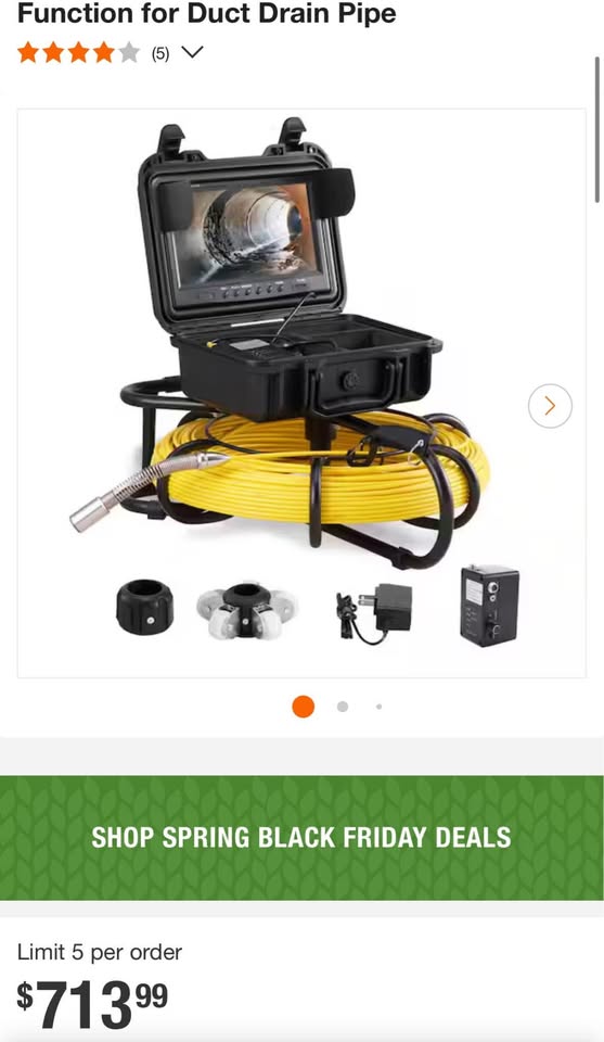 Bring it on the go: the professional plumbing camera will exceed your expectations for inspections in sewers, wastewater systems, stormwater systems, drains, ducts, etc. it is an outstanding helper for plumbers, contractors, inspectors, engineers, and municipal workers Specifications: camera pixels: 1 million, screen size: 9 in. storage: 16 GB sd card, view angle: 130°, cable length: 300 ft. camera diameter: 0.9 in. camera length: 5.6 in. material: 303 stainless steel, battery capacity: 4500 mah, battery work time: 6-hour, camera LED light: 12-pieces, LED adjustable: yes, waterproof: IP68 Package content: 1 x pipe inspection camera, 1 x battery, 2 x camera cover,1 x 16 GB SD card, 1 x charger,1 x screwdriver, 1 x Plastic Sun visor